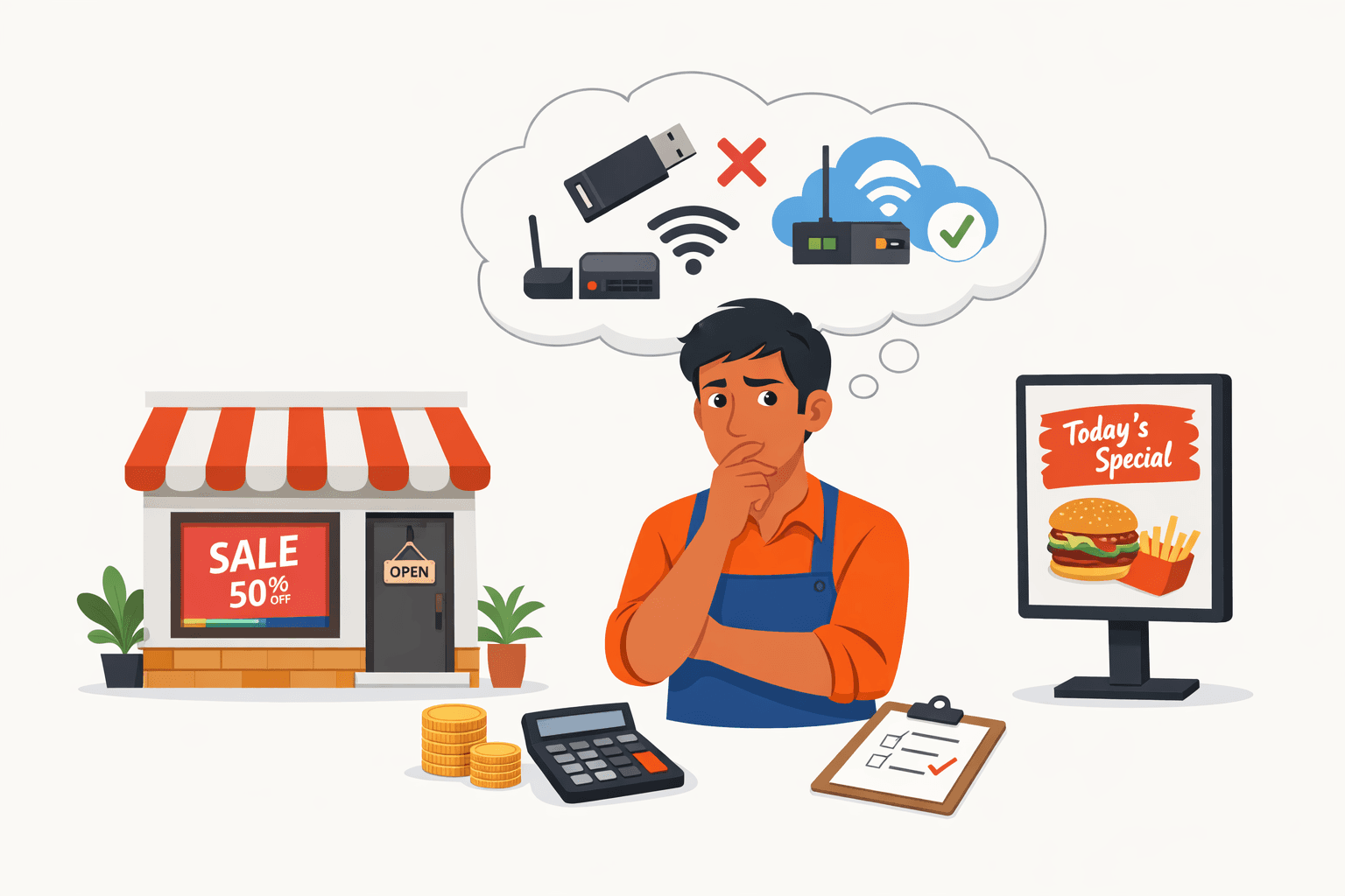 USB-based signage is often used as a quick starting point, but it introduces significant operational limitations.