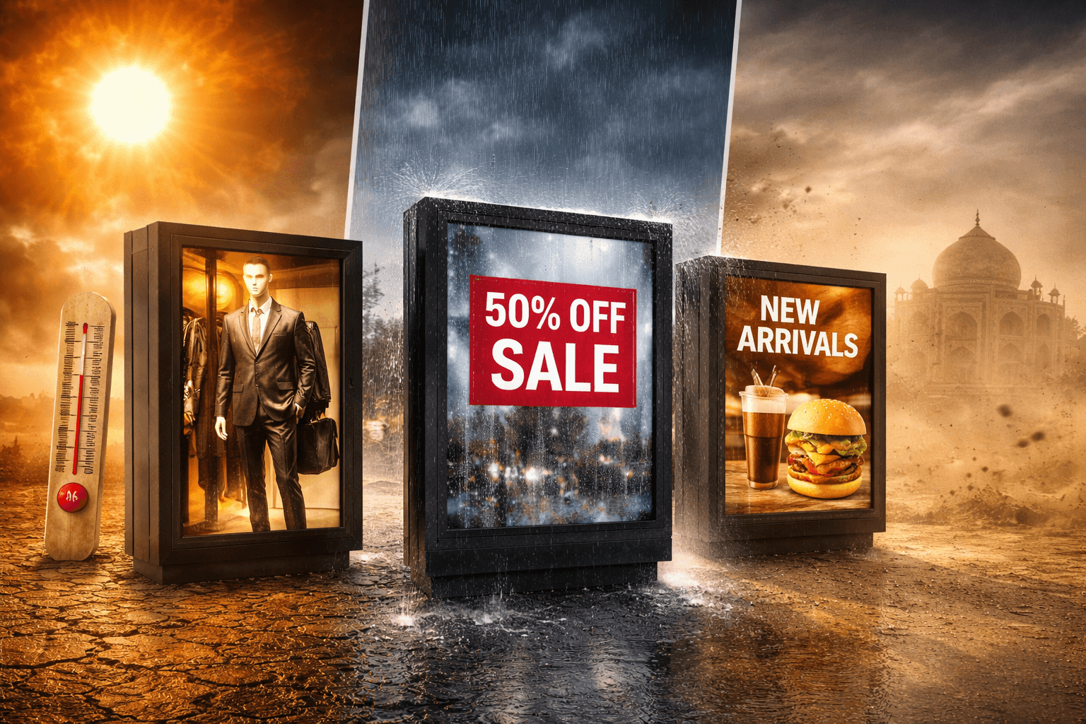 Outdoor environments in India combine multiple stress factors that standard displays cannot handle.