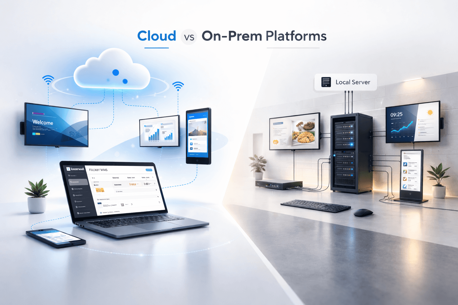 Cloud and on-prem digital signage solutions serve different operational needs.