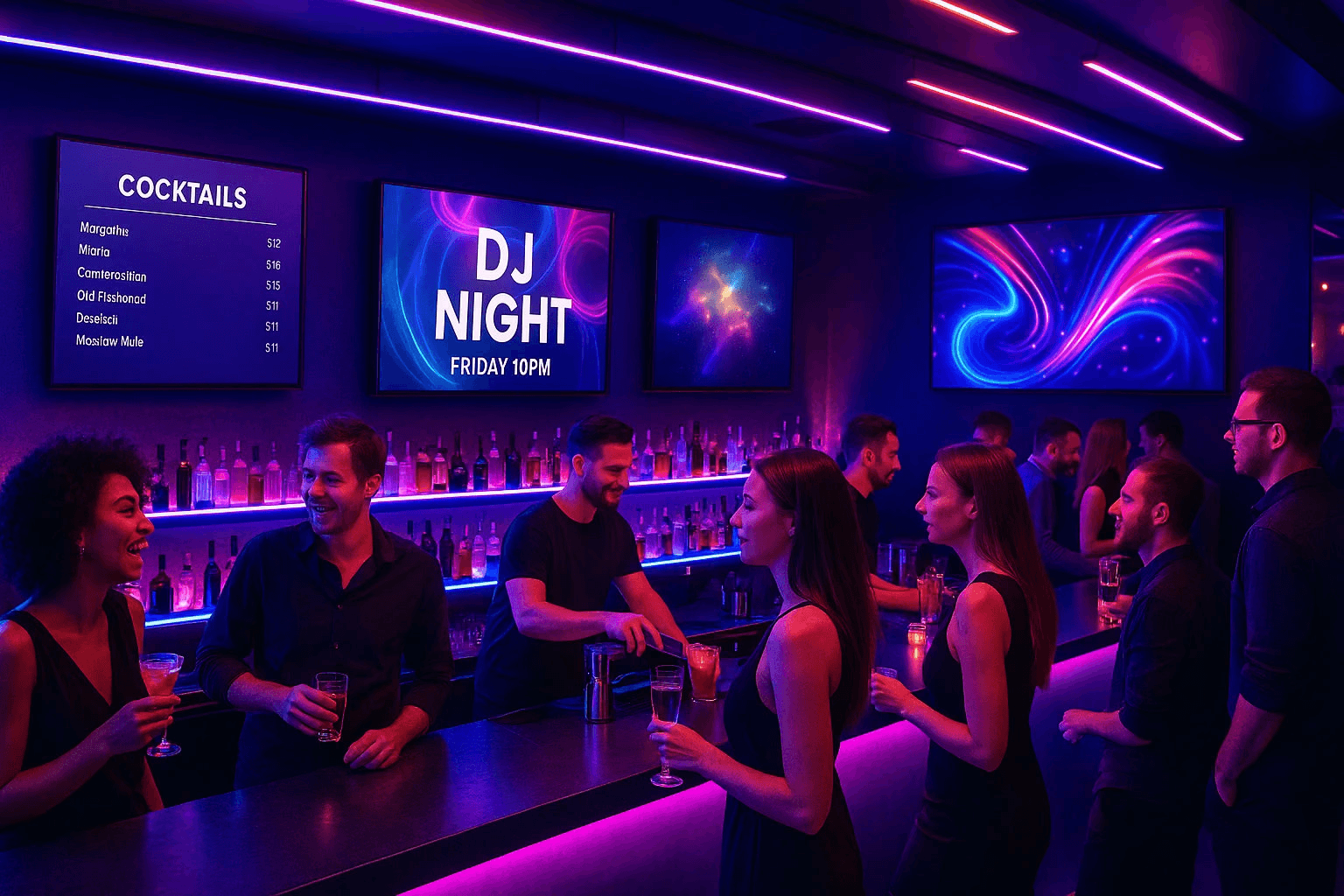 Digital signage is redefining the nightlife industry. It enhances atmosphere, drives drink sales, and enables real-time engagement that modern guests expect.