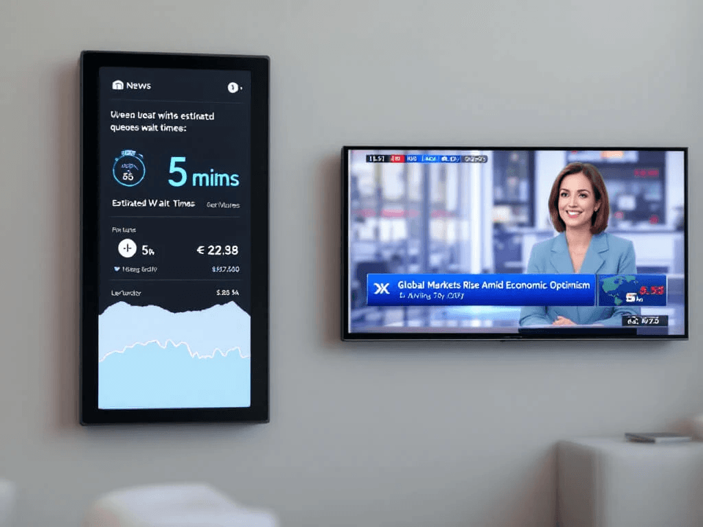 Queue frustration is one of the biggest challenges in branch environments. Digital signage helps reduce perceived waiting time by displaying: